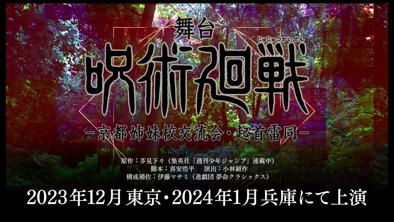 全情報解禁!京都姉妹校のメンバーと呪術で競い合う「京都姉妹校交流会」と、 虎杖・伏黒・釘崎を中心に物語が展開する「起首雷同」のエピソードを上演!